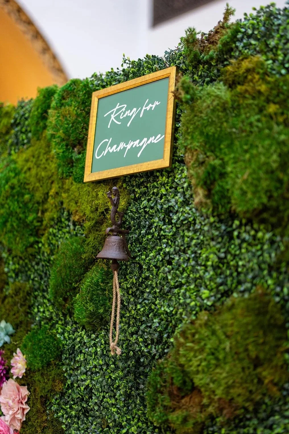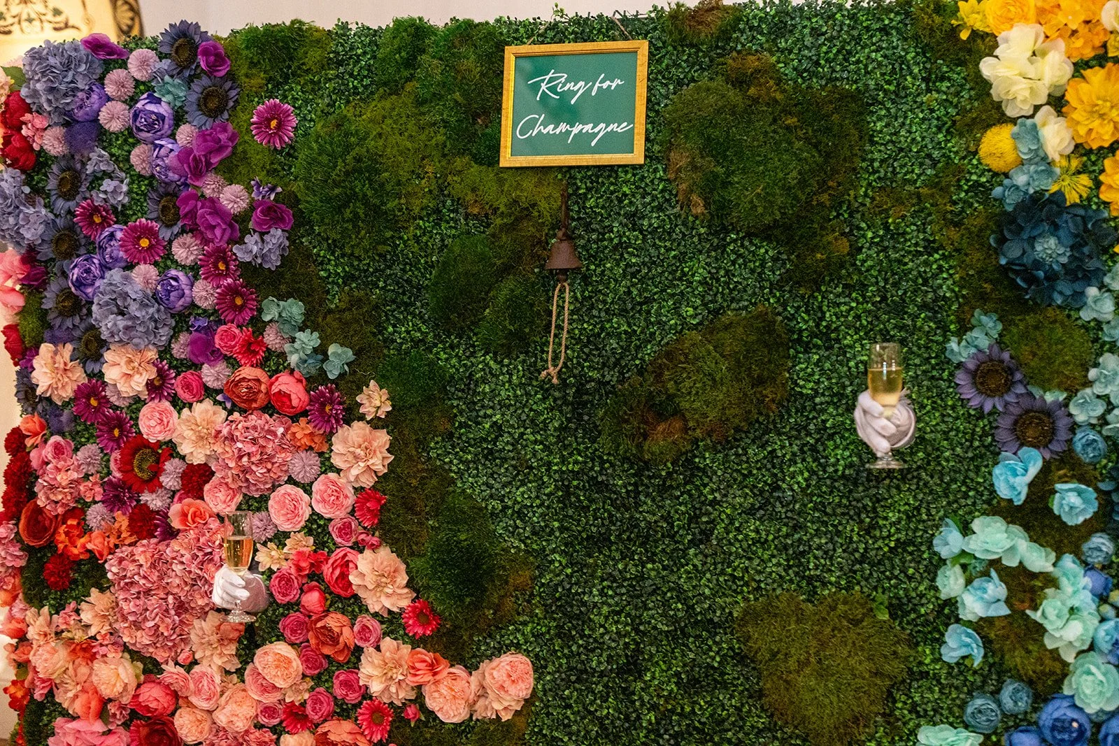 Renting The Tipsy Garden wall for your memorable event can transform your gathering into an enchanting experience! Whether you’re planning a wedding, birthday celebration, or any special occasion, our beautifully designed, hand-crafted garden wall adds a magical touch. Its charming aesthetic complete with delicate live moss, cascading flowers and secret compartments creates a stunning visual backdrop that will captivate your guests. Adding elements like fairy lights, personalized decor, disco balls and more can further customize and enhance the garden to match any style. A ring of the bell and a delicate glass of champagne arrives, slipped through the lush garden like a sparkling secret. The Tipsy Garden adds a soft fizz of celebration and the thrill of surprise to any event. Cheers to unexpected delights and garden-grown enchantment!