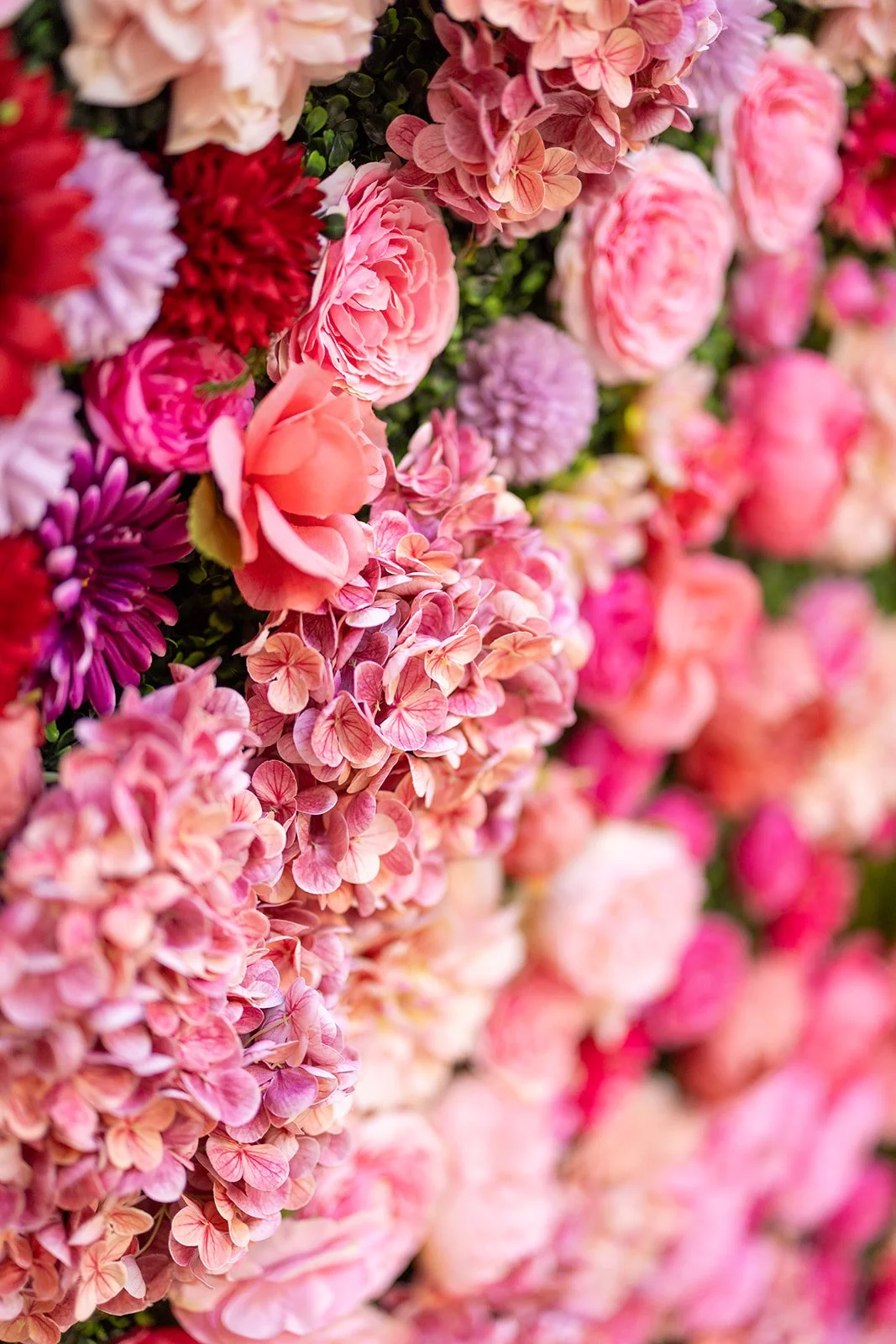 Our one-of-a-kind, hand built Garden Wall features delicate live moss, gorgeous cascading flowers and two hidden hand compartments.